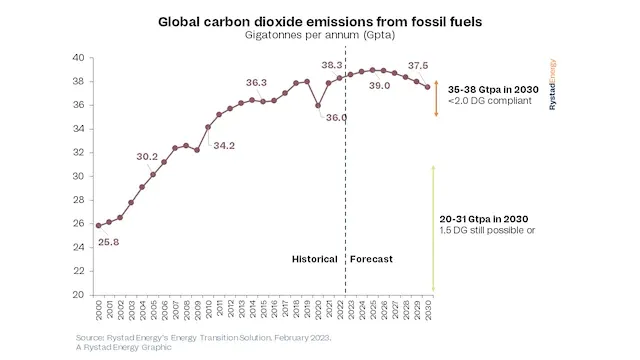 Carbon emissions are expected to hit 39Gtpa in two years.