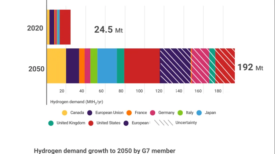 In 2020, hydrogen demand for G7 countries reached about 24.2 million tonnes of hydrogen. The countries also have the potential to account for 28% of global hydrogen consumption.