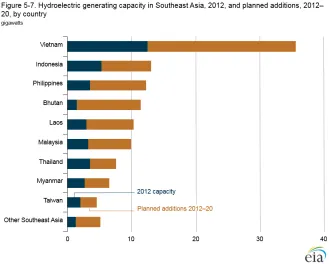 Bagan ini menunjukkan betapa ambisiusnya rencana pengembangan pembangkit listrik tenaga air di Vietnam