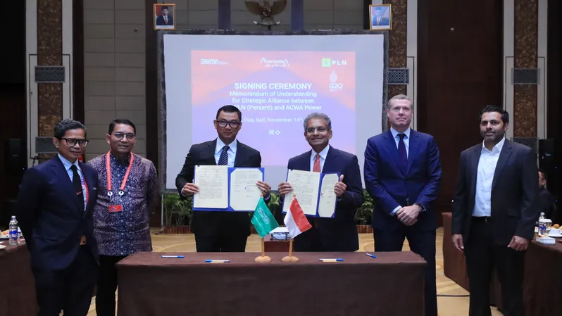 ACWA Power yang berbasis di Arab Saudi dan penyedia listrik milik negara PT Perusahaan Listrik Negara (PLN) menandatangani nota kesepahaman untuk mengembangkan hidrogen hijau dan penyimpanan baterai untuk energi terbarukan di Indonesia.