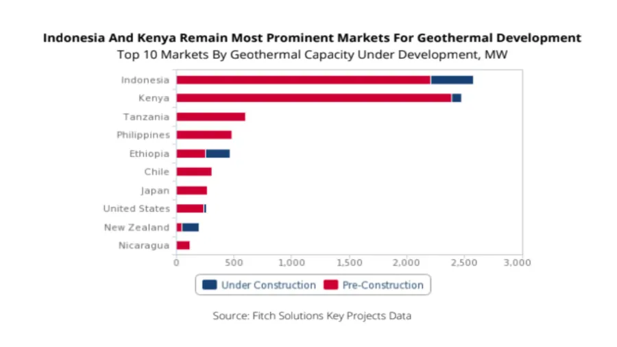 Menurut laporan Fitch Solutions, Indonesia menyumbang pangsa terbesar dalam pipeline panas bumi secara global, diikuti oleh Kenya.