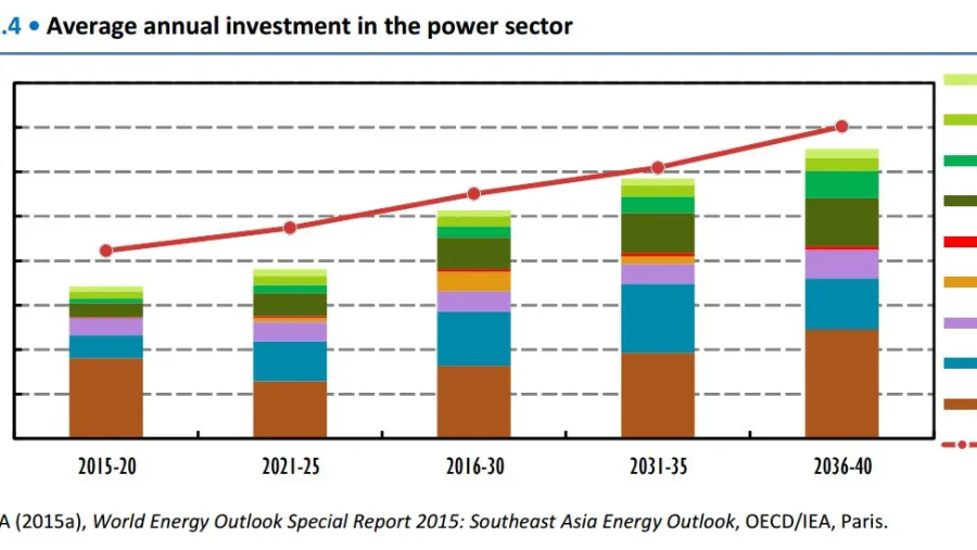 Proyeksi IEA menunjukkan bahwa total investasi sektor listrik yang diperlukan - tidak termasuk interkoneksi - dapat mencapai sebesar USD1,3 triliun pada2040. Rencana APG saat ini diperkirakan menelan biaya USD20 miliar.