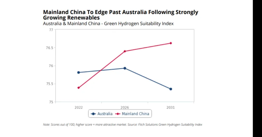 Australia and Mainland China are the “outperforms” in the Green Hydrogen Suitability Index in Asia, according to a report by Fitch Solutions.