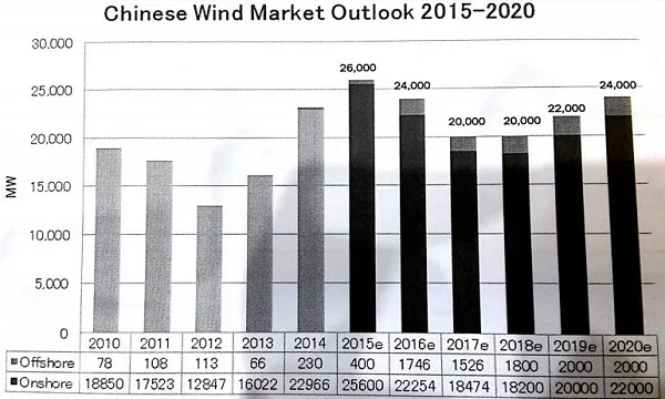 The forecast for the Chinese wind market for 2016 was upgraded from 20GW to 24GW since the 5th batch of projects under the 12th five-year plan, totalling 34GW, was approved by NEA to provide clear visibility for 2016-17.