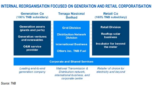 Malaysian power utility Tenaga Nasional Berhad (TNB) has proposed an internal restructuring of its three divisions: generation company (Genco), TNB housing the regulated transmission & distribution as well as the international businesses, and retail company (Retailco). The exercise is expected to be completed by the third quarter of 2020, whilst the legal process of asset and liability transfer of each division is expected sometime in H1 2020.