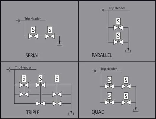 These testing requirements extend throughout the entire system from input sensors to the final solenoids and even the stop valves. Switches can be difficult to test and provide no information about their health when their state is static. For this reason, switches should be eliminated or at least minimized as primary process inputs to a safety system.