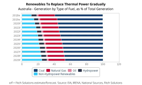 Australia’s thermal power capacity is expected to contract by nearly 2.9GW over the coming decade due to the closure of its oldest and least efficient plants, underpinned largely by the influx of cheaper, renewable sources that have created structural risks to the thermal power sector, according to a report by Fitch Solutions.