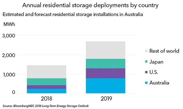 Residential energy storage systems could dominate Australia’s near future as around 70,000 households are expected to install batteries this year, BloombergNEF revealed.
