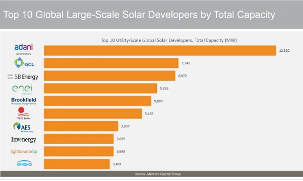 India's Adani Group has been hailed as the top global solar power generation asset owner in terms of operating solar projects, according to the latest ranking of global solar companies by Mercom Capital.