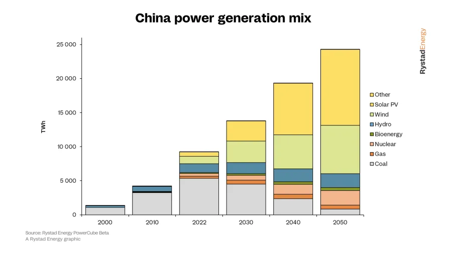 “China is ahead of the game; coal use in the power sector is set to peak in two years’ time and new renewable power is coming online faster than any other country,” Carlos Torrez Diaz, head of power at Rystad Energy, said.