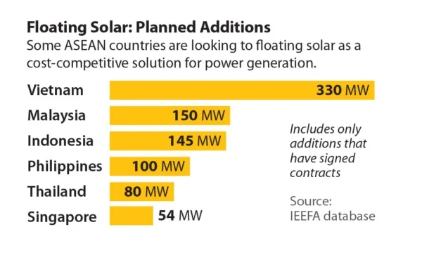 More ASEAN countries are building floating solar farms to produce electricity at prices that can compete with coal-fired power, according to a report from the Institute for Energy Economics and Financial Analysis (IEEFA).