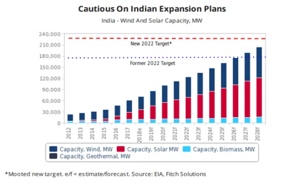 “That said, we believe delays to the implementation of tendered projects and more muted interest in new auctions will present a substantial hurdle to fulfilling these envisioned expansion plans,” Fitch Solutions added.
