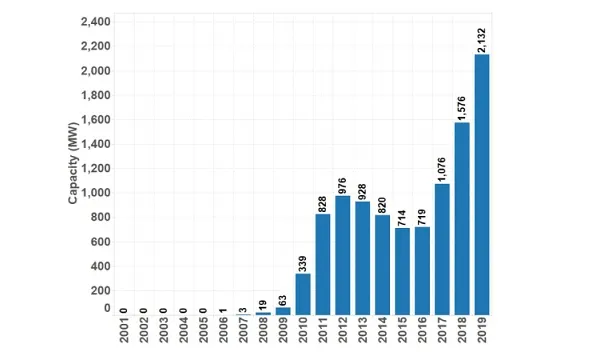 Australia saw its installations of sub-100kW PV double to a record 2.13GW in 2019 from two years ago, according to a report from solar energy consultancy firm SunWiz. This is also triple the volume from 3 years ago.