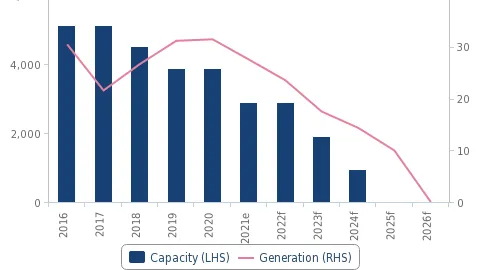 “Decommissioning nuclear power plants will also result in a nuclear power generation contraction of 27.5 terawatt-hours in end-2021 to no nuclear power generation by the start of 2026,” the report also noted.