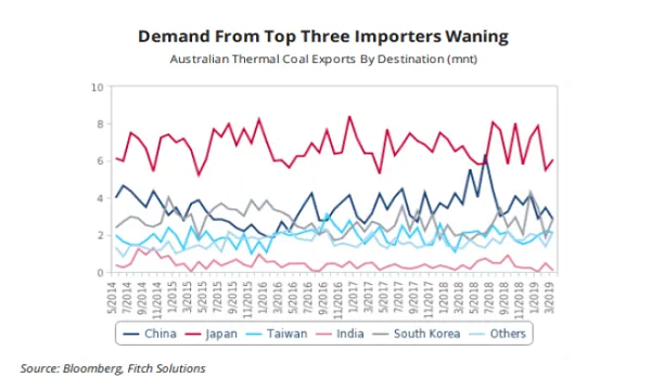 Additionally, China, which accounted for 24% of Australian coal exports in 2018, has shown lacklustre demand for seaborne coal YTD, Fitch Solutions noted. Coupled with lengthy delays of up to three months in port clearing of Australian thermal coal due to heightened inspections and import curbs and buyer incentives to switch to other suppliers, demand from China has dwindled. Additionally, local supply is reportedly ample due to mine upgrades and expansions, further dragging down export demand.