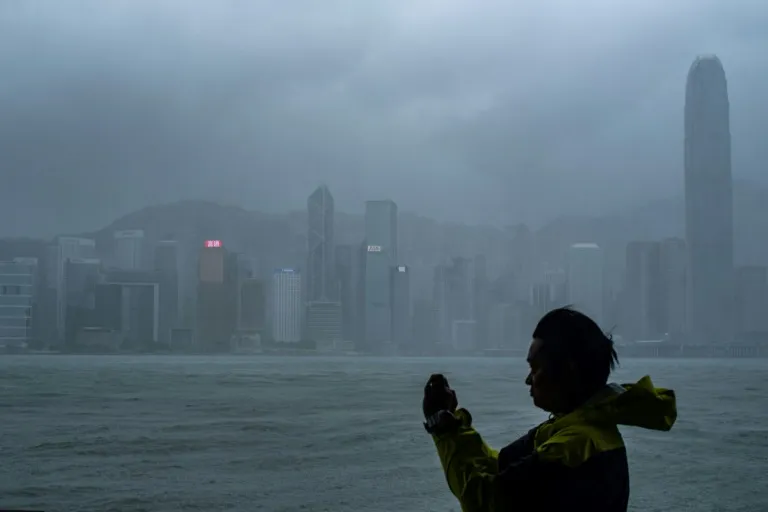 As the typhoon landed on Hong Kong, officials raised the storm alert to the highest level at Hurricane Signal No. 10.