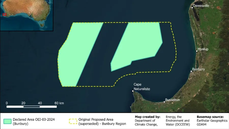 The Australian Government has designated an area in the Indian Ocean near Bunbury, Western Australia, for offshore wind development.