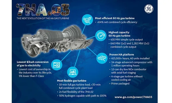 GE has been awarded to deploy its latest gas turbine technology, the 7HA.03, with its matching steam turbine, generators, and HRSG at both sites. GE will supply 10 7HA.03 gas turbines, 5 steam turbines, 15 generators, 10 heat recovery steam generators (HRSG), and additional balance of plant equipment as part of the project scope.