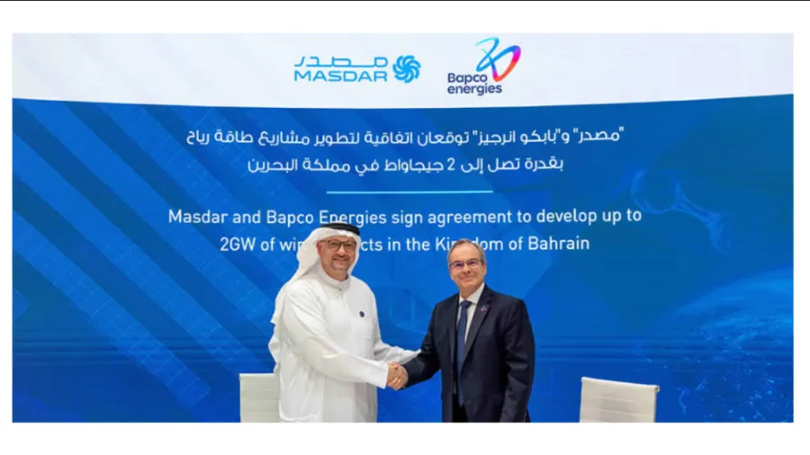 Clean energy firm Masdar partnered with Bapco Energies to jointly develop up to two gigawatts of wind projects in Bahrain.