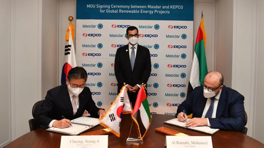United Arab Emirates-based energy firm Masdar and the Korea Electric Power Corporation (KEPCO) signed a memorandum of understanding to explore development opportunities in the offshore wind energy sector and other clean energy resources.