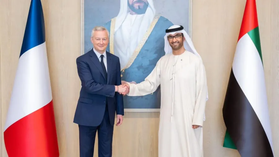 This came following the conferment of Dr Sultan Ahmed Al Jaber, UAE Minister of Industry and Advanced Technology, President-Designate for COP28, and Chairman of Masdar with Bruno Le Maire, French Minister of the Economy, Finance, and Industrial and Digital Sovereignty, as part of the French Minister’s visit to the UAE.